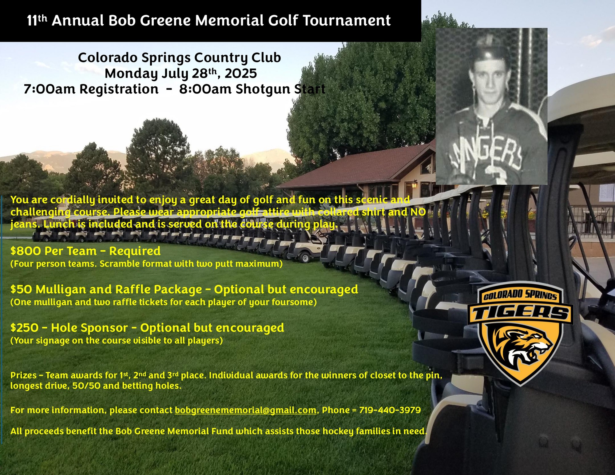 Funds raised benefit the Bob Greene Emergency Scholarship Fund for the Colorado Springs Amateur Hockey Association.