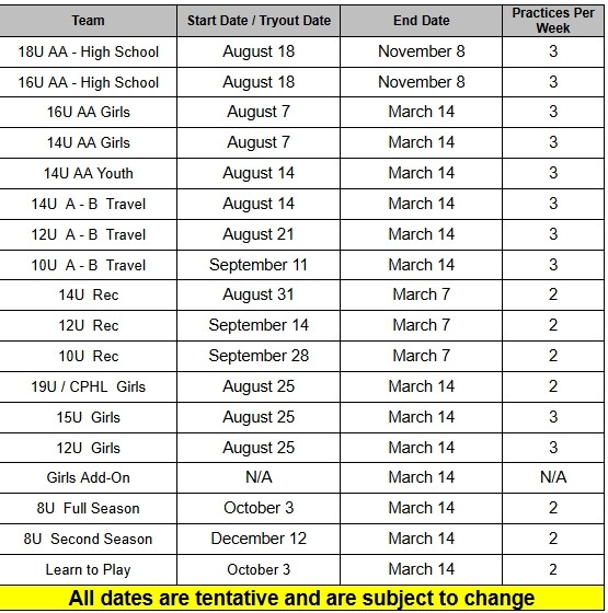 2026-2027 current program options include: 10U A/B, 12U A/B, 14U AA/A/B